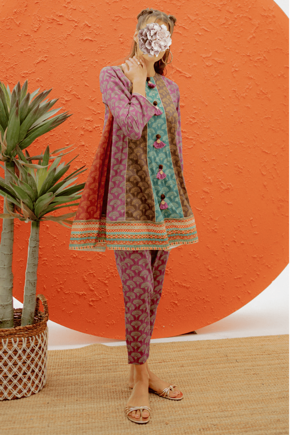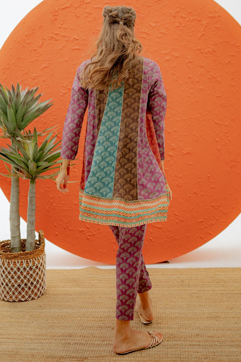 Get this digital print short flared kurta paired with pants